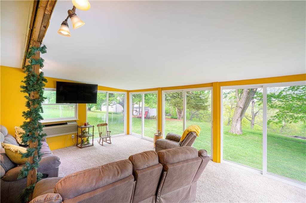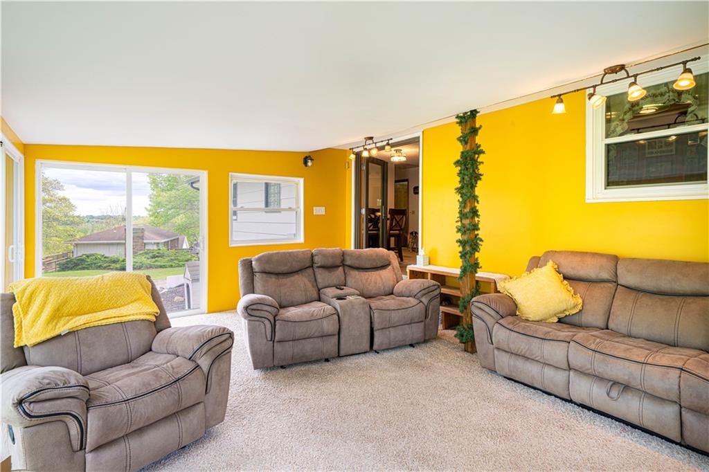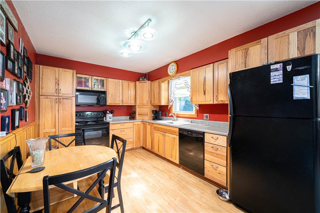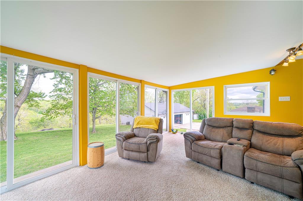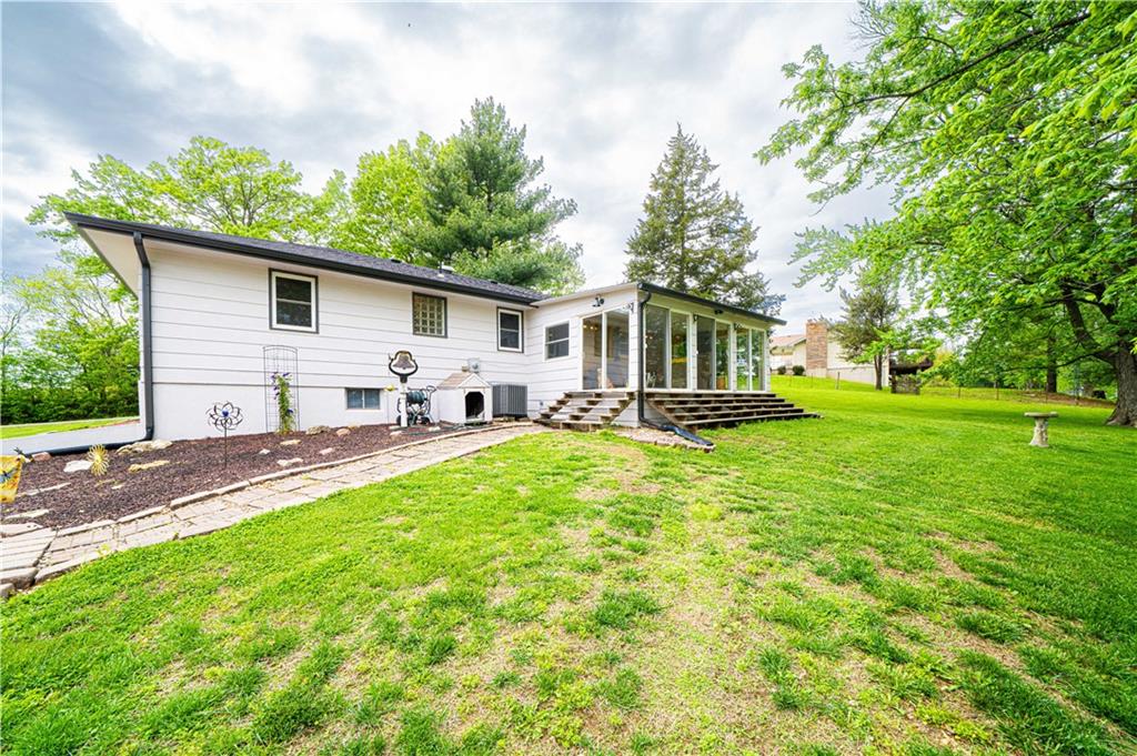 Spacious and well-maintained 4-bedroom, 2-bath home on 1.5 acres along State Rt DD in Savannah, MO, offering 2,536 total finished square feet and a full finished walk-out basement. This property has seen extensive updates, including new windows, HVAC system with humidifier, hot water heater, and added attic insulation in 2021, plus a brand-new roof and gutters in 2024. Septic system (tank and laterals) was replaced in 2017. The main level features three bedrooms with hardwood floors, ceiling fans, and soft pull-down blinds. The updated kitchen offers hickory cabinets with soft-close drawers, laminate flooring, modern lighting, and includes GE stove/oven, microwave, Frigidaire refrigerator, and Maytag dishwasher. The living room showcases a wood-burning fireplace, built-in grandfather clock, and fresh paint. The finished basement adds a fourth bedroom, second full bath with recent updates, new laminate flooring, fresh paint, additional living space, and ample storage. Wall-mounted TVs in the basement living area and bedroom stay. Exterior highlights include a 3-car detached garage with electricity and automatic doors (roof replaced in 2020), attached lean-to for extra storage, a 1-car attached garage, and plenty of parking. A rare combination of space, updates, and functionality—this home is truly move-in ready.