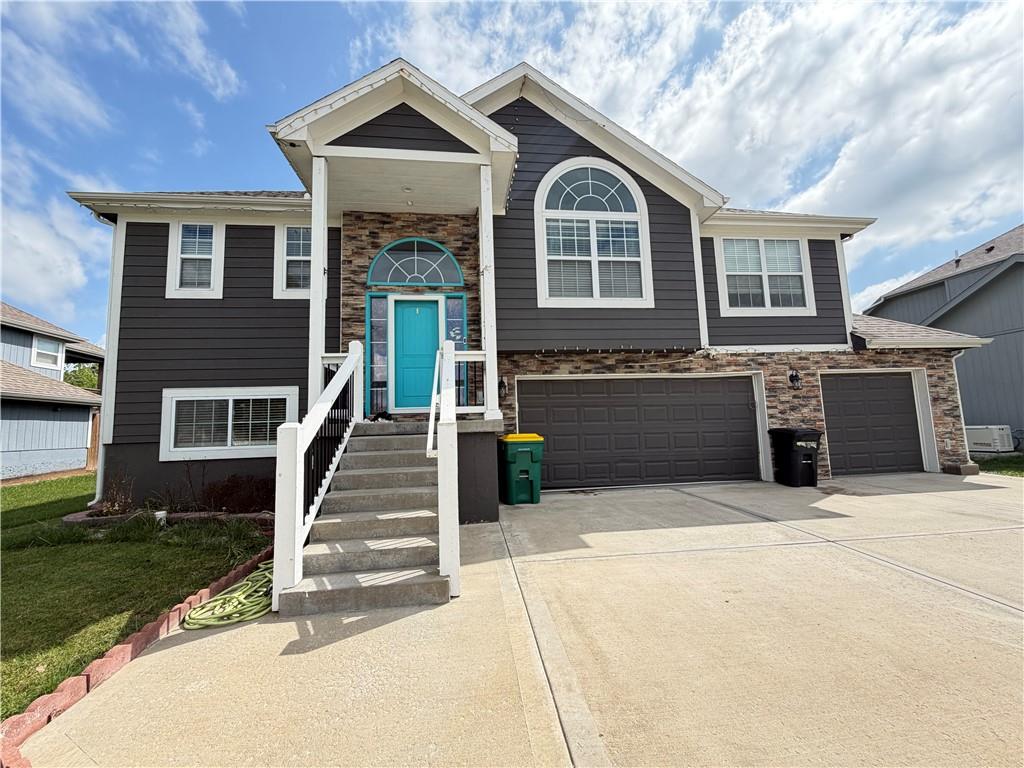 Super spacious 3 Car Garage Split Entry with upgrades galore granite counter tops throughout, hardwood in kitchen and dining room, tile in baths, laundry and entryway,Large master suite with walk- in - closet and large master bath along with Jetted tub and walk in shower. Family room and 4th bedroom in basement. Floor laundry , open floor plan. Notes Property taxes and room sizes are estimated **********